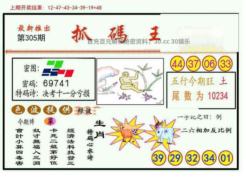 【精解抓码王】开(鼠42) 305期:决考十一分亏损 【主攻抓肖】虎龙马鸡猪猴鼠狗蛇 【抓码尾数】01234 |